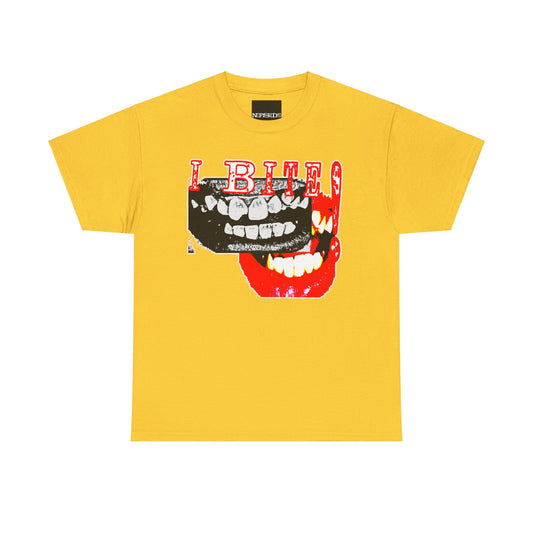 “I Bite” Heavy Cotton Graphic T-Shirt - Bold High-Contrast Teeth Design